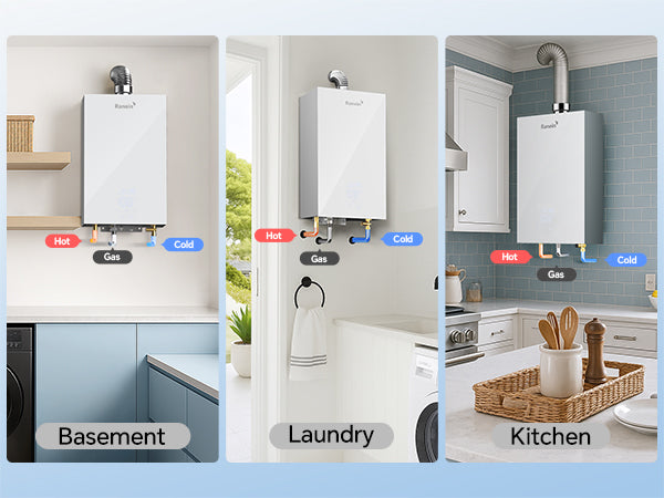 - Choose Your Ranein:Please confirm that you have selected the size you need. The dimensions of this water heater are: 27.24“ × 24.69” × 9.65". It has a more compact design and is easy to install.