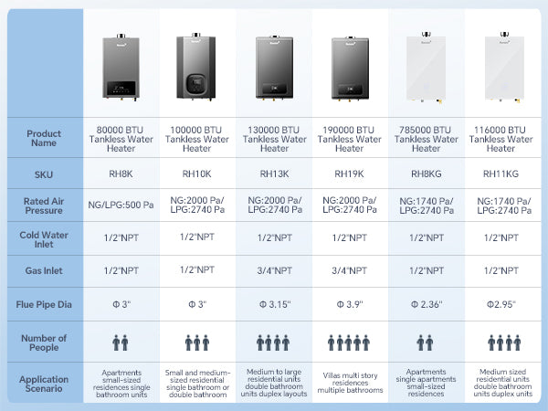 - No waiting: With a flow rate of up to 10.6 gallons per minute, 191,100 BTU of power, and an upgraded zero cold water start feature, this water heater provides your family with unlimited instant hot water, meeting the water demand of 4-5 outlets and completely eliminating the hassle of cold water starts!